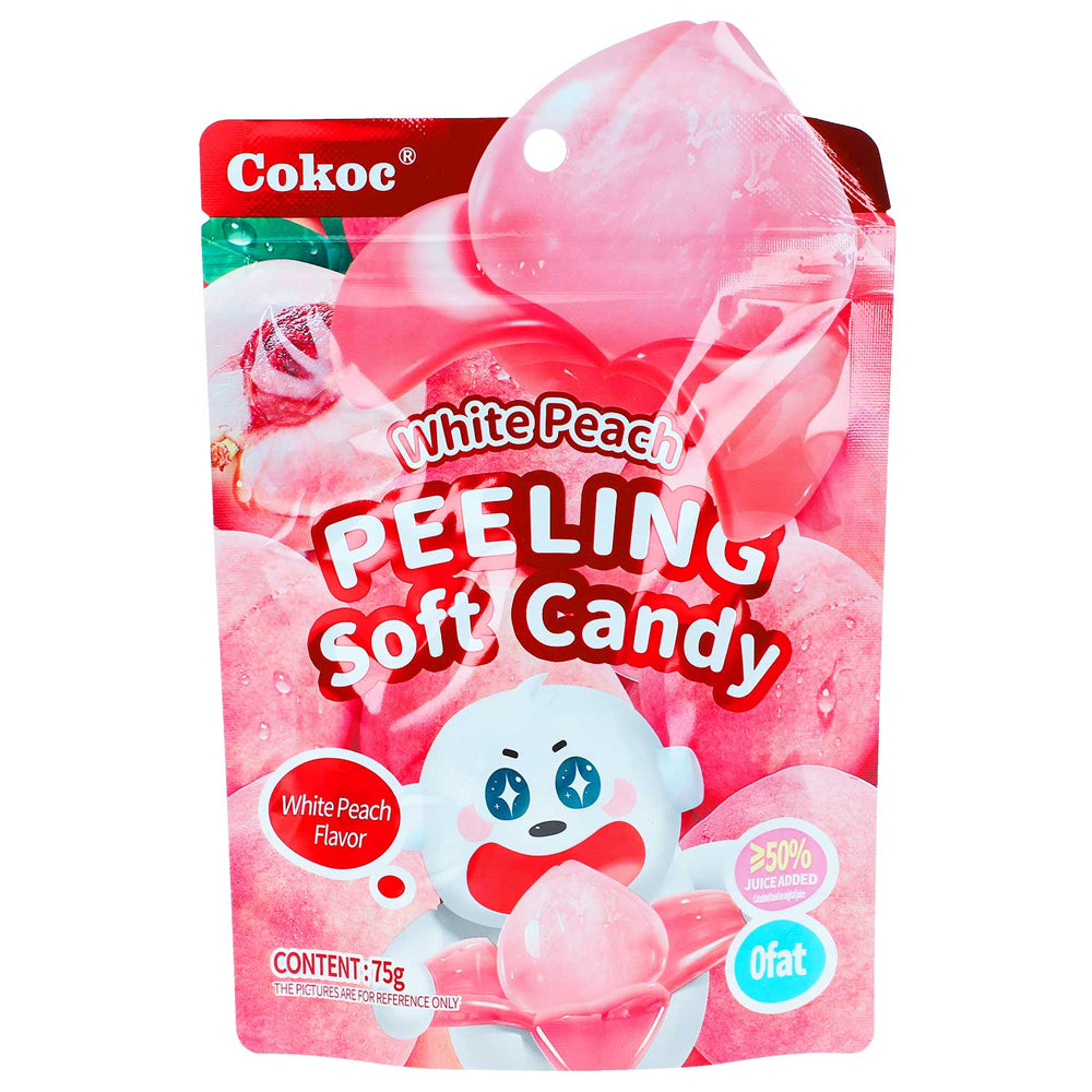 Cokoc White Peach Peeling Soft Candy 75 g – Zarte Kaubonbons mit fruchtigem Weißpfirsich-Geschmack